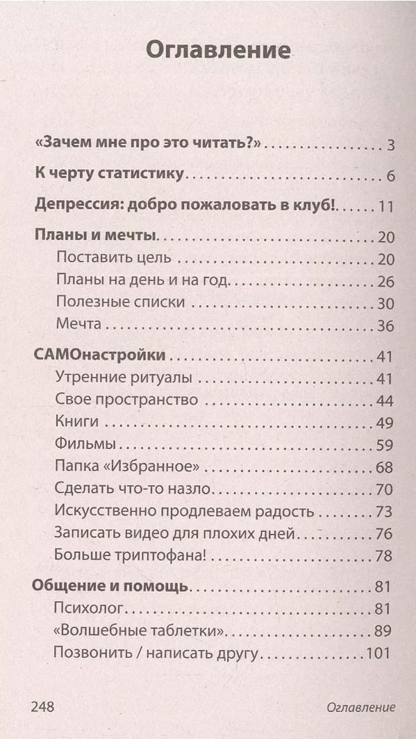 The author's idea is to encourage you to listen to your inner voice, trust it, and, based on the proposed techniques, come up with and implement your own. Choose something that you like. And then come up with your own methods and you will be your own antidepressant!