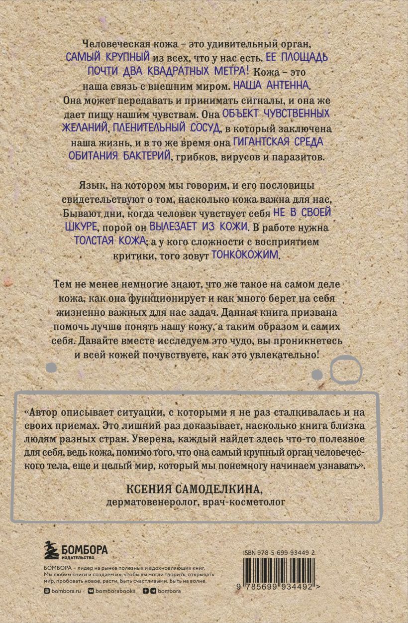 This book is designed to help you better understand our skin, and thus ourselves. You will be imbued and feel with your whole skin how fascinating it is!