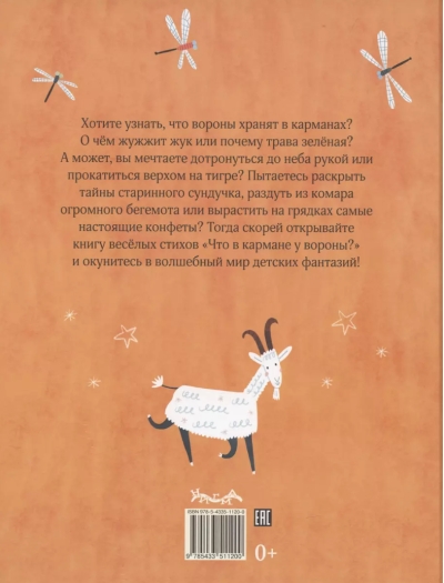 Do you want to know what crows keep in their pockets? What a beetle buzzes about or why the grass is green? Or maybe you dream of touching the sky with your hand or riding a tiger? Are you trying to unlock the secrets of an ancient chest, to blow a huge hippopotamus out of a mosquito or to grow the most real candy on the beds? Then quickly open the book of funny poems "What's in the crow's pocket?" and plunge into the magical world of children's fantasies.