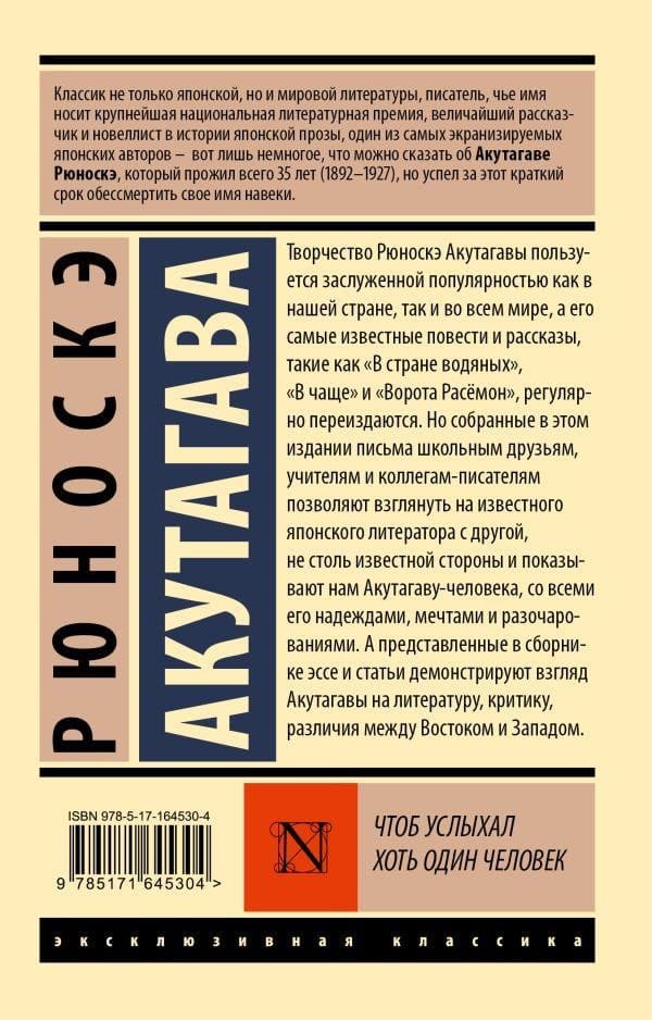 Ryunosuke Akutagawa's work is deservedly popular both in our country and all over the world, and his most famous novels and stories, such as "In the Land of the Watermen", "In the Wilderness" and "Rasemon Gate", are regularly reprinted. But the letters to school friends, teachers and fellow writers collected in this edition allow us to look at the famous Japanese writer from a different, not so well-known side and show us Akutagawa the man, with all his hopes, dreams and disappointments. The essays and articles presented in the collection demonstrate Akutagawa's view of literature, criticism, and the differences between East and West.