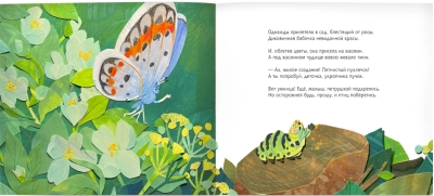 A monster has taken up residence in a beautiful garden: fat, striped, with orange horns. Everyone teases it and tries to catch it. Only a beautiful butterfly doesn't bother the monster. She knows what an unusual garden inhabitant it is.