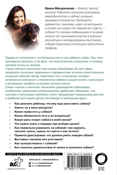 Irina Makarenkova is a biologist, ecologist, and cinematologist. She has worked as a rural agronomist, microbiologist, and is now successfully engaged in business. She is fond of diving with sharks, riding a motorcycle and playing the guitar. But her main passion is dogs! For many years she has participated in major Russian and international exhibitions with her favorites, having gathered a serious collection of prestigious trophies.
