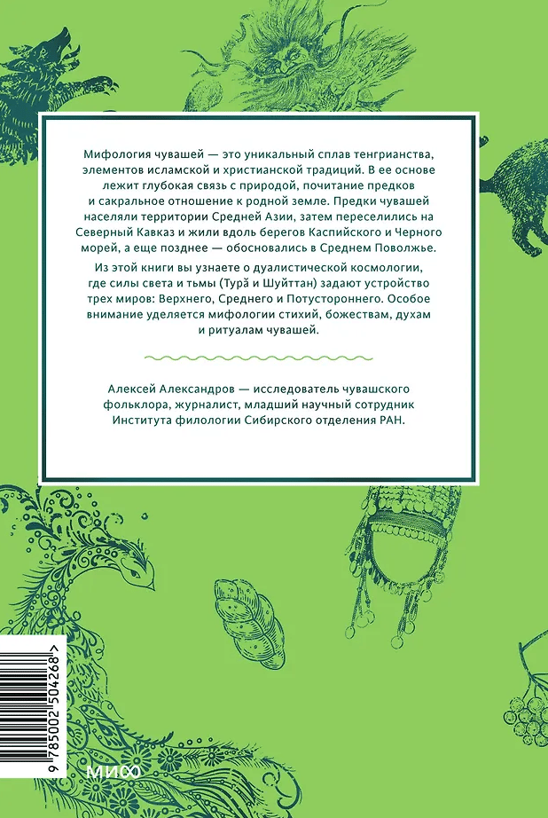 The book introduces the reader to the mythology of the Chuvash people. You will learn about three worlds - the Upper, Middle and Otherworldly - inhabited by gods, spirits and mythological creatures. The material is based on ethnographic records collected during the 18th-21st centuries, and reflects the traditional ideas of the Chuvash about the structure of the world, the elements, rituals and spiritual tradition.