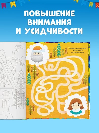 On the bright pages, children will find a variety of exciting tasks: they will have to assemble a New Year's mosaic, find a way out of a confusing labyrinth and the differences between seemingly completely identical pictures, draw, finish drawing and color. Exercises necessary for the development of fine motor skills, logic, attention, imagination, are presented in the form of fun games in the company of charming characters - Grandfather Frost, Snow Maiden, snowmen, gingerbread men.