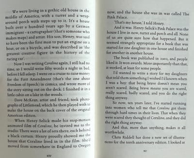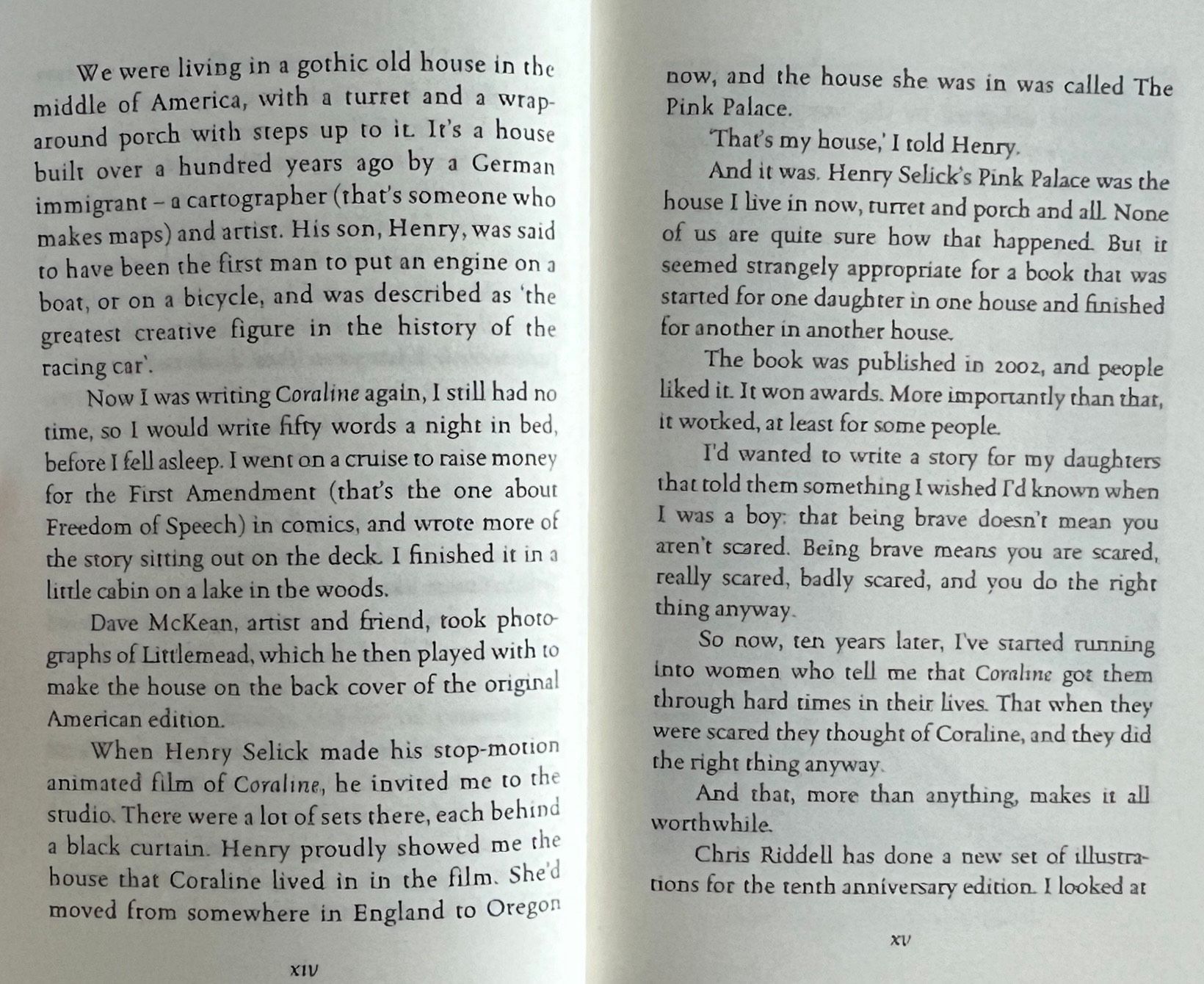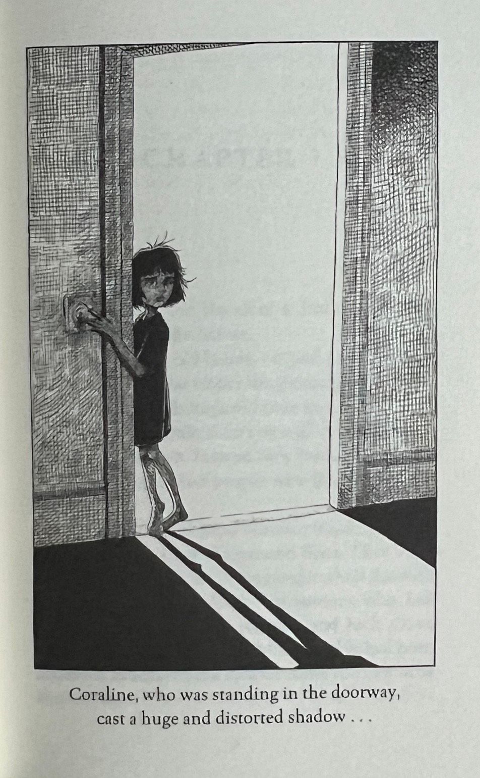 There is something strange about Coraline's new home. It's not the mist, or the cat that always seems to be watching her. It's the other house. Another mother and father with black-button eyes are waiting for Coraline to join them there. And they want her to stay with them. For ever...
