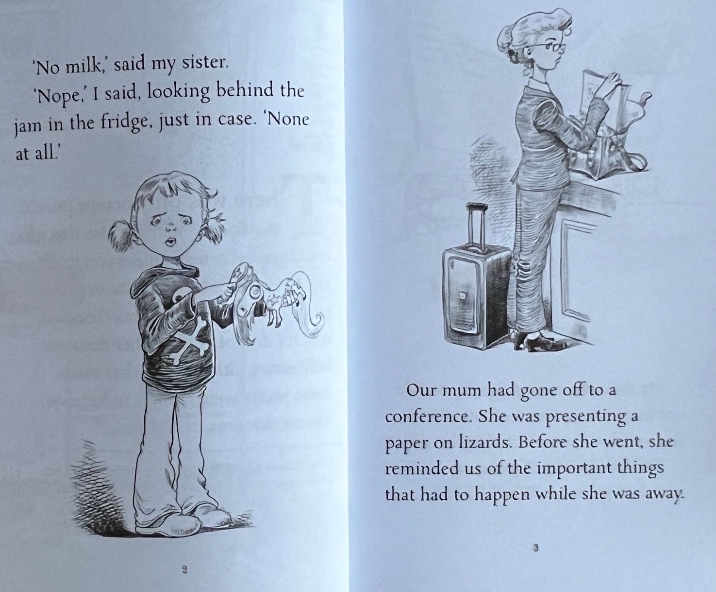 Mum's away. Dad's in charge. There's no milk. So Dad saves the day by going to buy some. Really, that's all that happens. Very boring. There are absolutely NO aliens, pirates, or intergalactic police inside. And most definitely NOT a time-travelling hot-air balloon piloted by the brilliant dinosaur scientist Professor Steg...