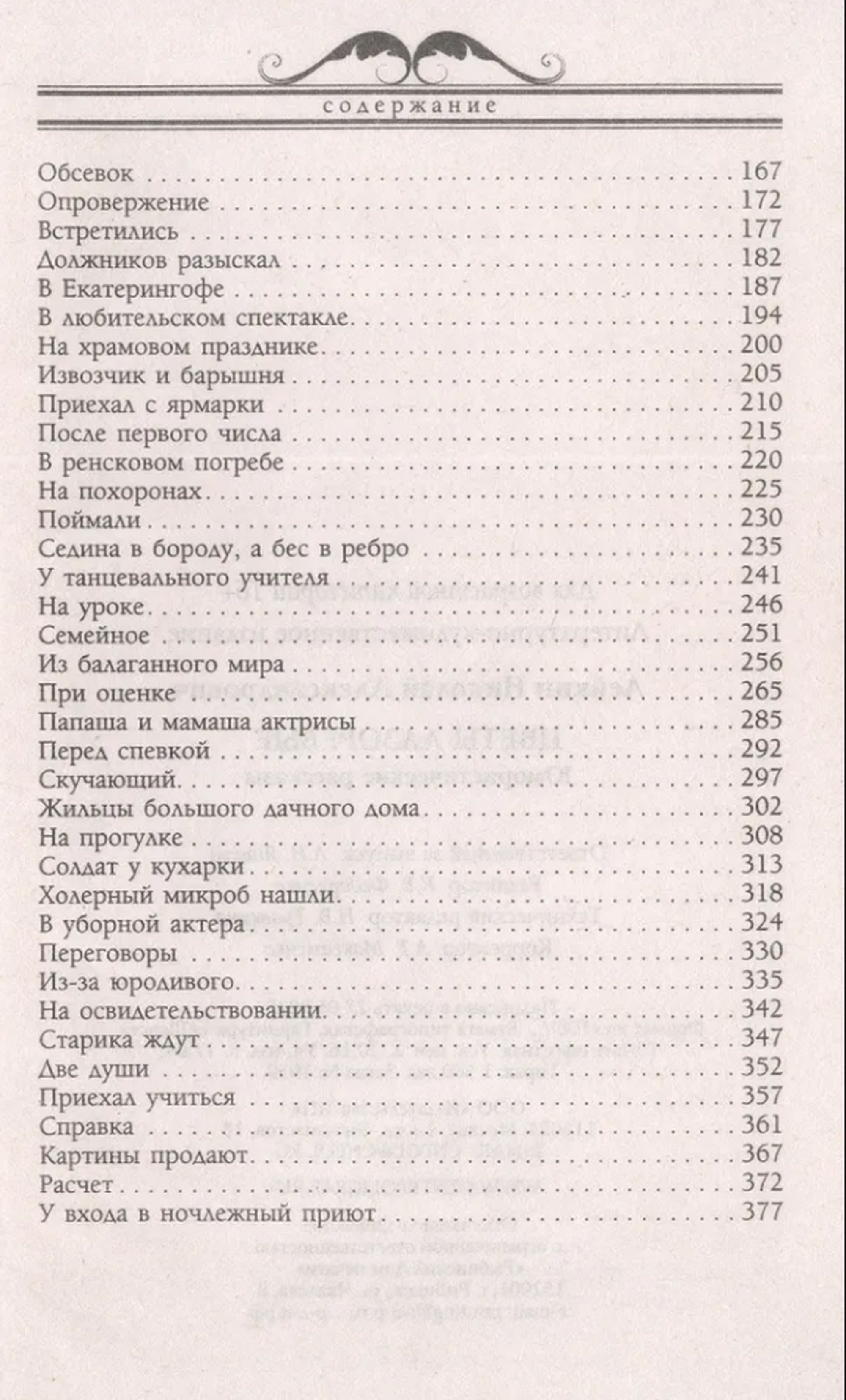 Nikolai Alexandrovich Leikin, a renowned writer of the late 19th and early 20th centuries, meticulously observes and vividly describes the characteristic signs of the times in his stories, making his works not only a whirlwind of images and situations but also a unique encyclopedia of Russian life at the turn of the century. This collection captures life in all its diversity, and many of the ironically played-out themes—such as superstition, gossip, family squabbles, poverty and destitution, bureaucracy, ostentatious charity, and widespread drunkenness—resonate with readers today. Scenes characteristic of the period are also played out: the relationships between the impoverished nobility and the new masters of life—merchants. The latter's narrow-mindedness and desire to solve any problem with money—for example, by buying the lead role in a play—are mocked, albeit rather kindly.