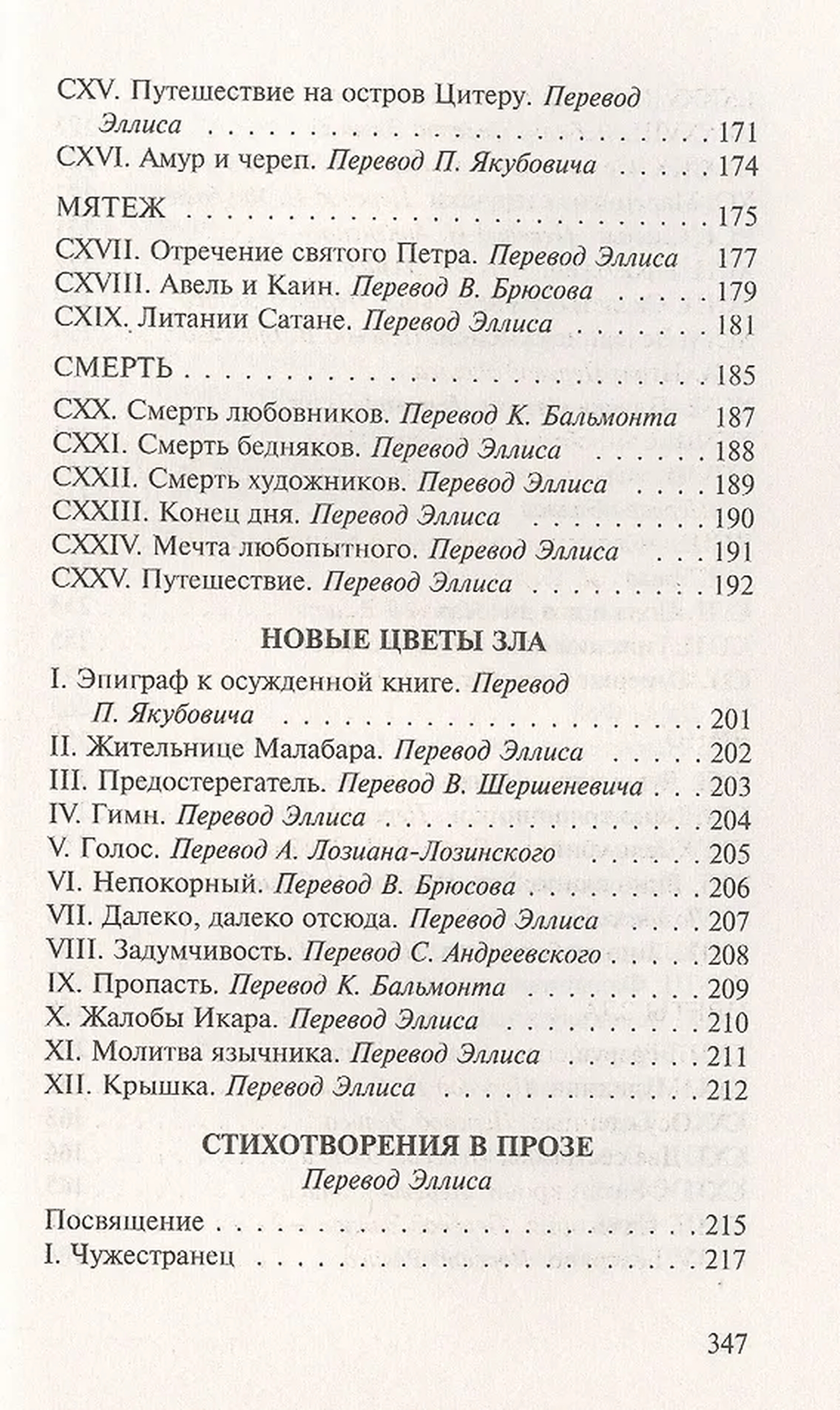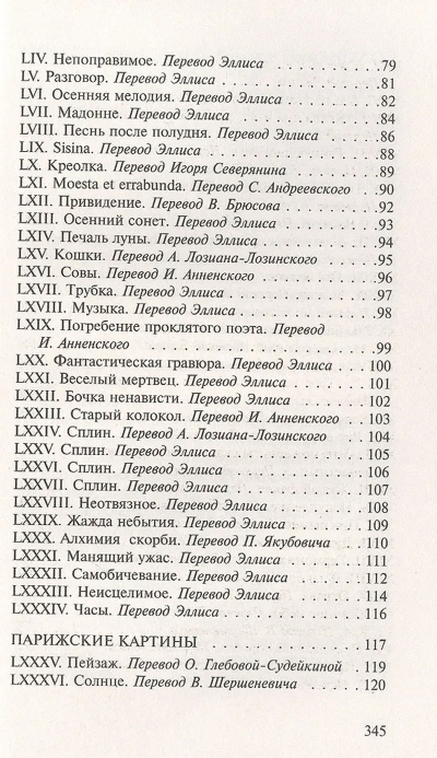 This collection includes two of Baudelaire's books—"Poems in Prose" and the seminal "Flowers of Evil," which brought the author resounding international fame. This book, a manifesto of French Symbolism, was first published in 1857 and provoked a violent public reaction. The scandal ended with a court fine for the poet, the book's print run was seized, and the most "indecent" poems were removed from the collection.