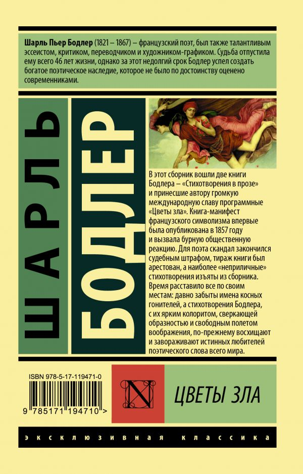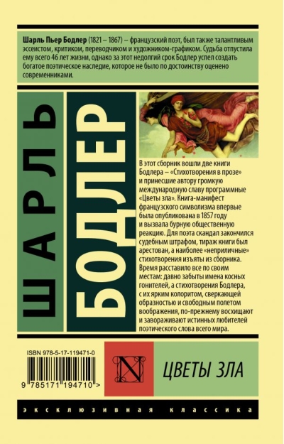 This collection includes two books by Baudelaire - "Poems in Prose" and brought the author loud international fame program "Flowers of Evil". Manifesto book of French symbolism was first published in 1857 and caused a violent public reaction. For the poet scandal ended with a court fine, the circulation of the book was arrested, and the most "obscene" poems were withdrawn from the collection.
