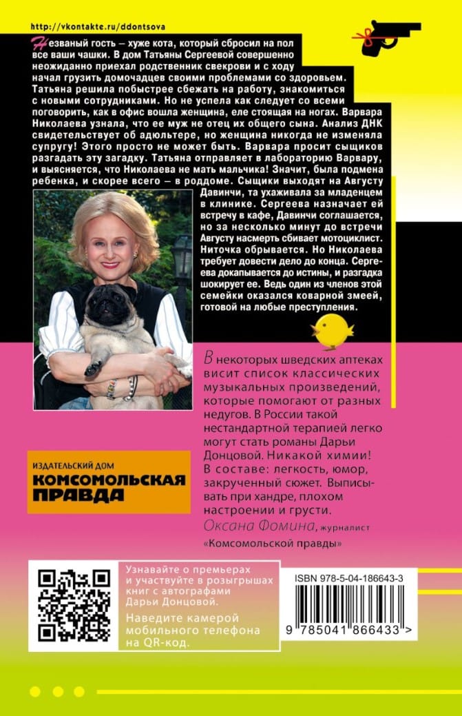 An uninvited guest is worse than a cat who has dropped all your cups on the floor. Tatyana Sergeyeva's mother-in-law's relative arrived at her house quite unexpectedly and began to burden the household with his health problems. Tatiana decided to run away to work, to get acquainted with new employees. But she didn't have time to talk to everyone, as a woman barely standing on her feet entered the office. Varvara Nikolaeva learned that her husband is not the father of their common son. DNA tests indicate adultery, but the woman has never cheated on her spouse! It simply can not be. Varvara asks the detectives to solve this mystery. Tatiana sends Varvara to the laboratory, and it turns out that Nikolaeva is not the boy's mother! So, there was a substitution of the child, and, most likely, in the maternity hospital. Detectives come out on Augusta Davinci, that took care of the baby in the clinic. Sergeeva appoints her a meeting in a cafe, Davinci agrees, but a few minutes before the meeting Augusta is killed by a motorcyclist. The thread is broken. But Nikolaeva demands to see the case through to the end. Sergeeva digs up to the truth, and the clue shocks her. After all, one of the members of this family turned out to be an insidious snake, ready for any crime.