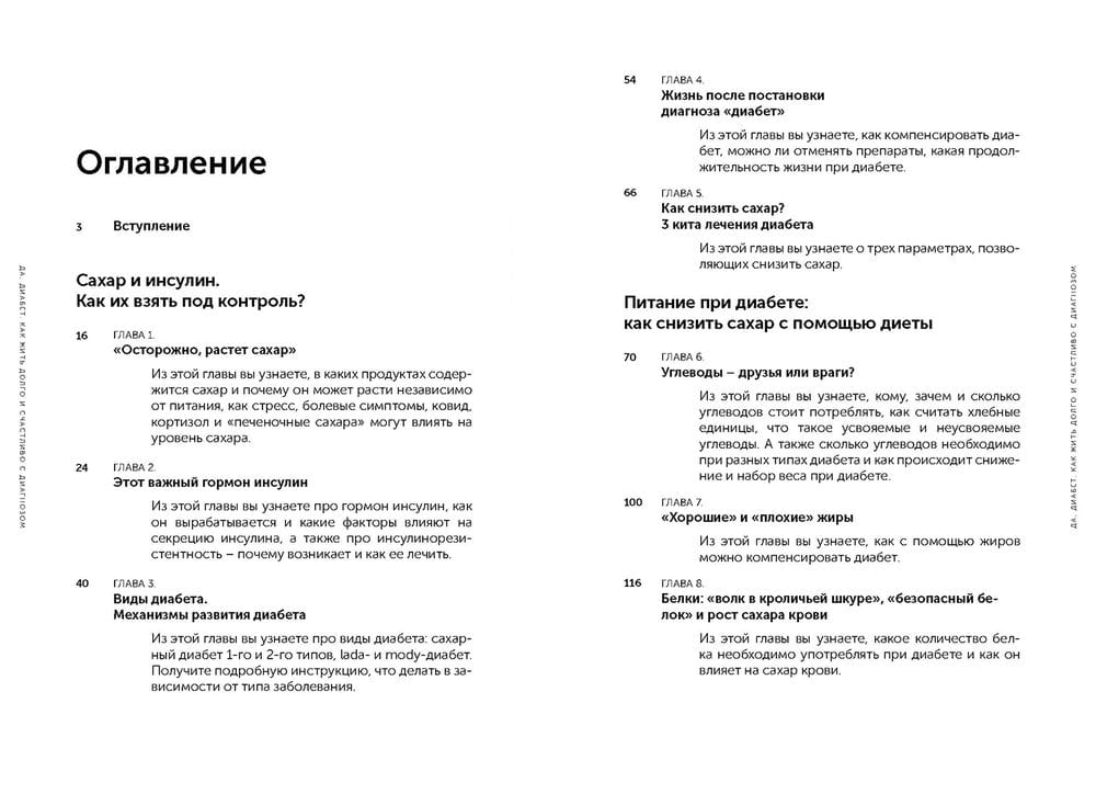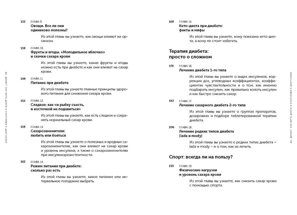 Olga Pavlova, a practicing endocrinologist and author of a popular Youtube blog, has written a book that will become a desk book for every patient diagnosed with diabetes. You can read it from the beginning or study the chapters that are interesting to you, from which you will learn how the disease develops, about modern methods of treatment, effective diets and selection of physical activity. Domestic understandable examples, the most acute questions of patients and their most frequent mistakes and misconceptions - all this you will find in the book. Thanks to the competent advice of a professional you will be able to bring your sugar to normal, avoid complications, feel energetic for many years, because diabetes at any age - it is not a verdict!