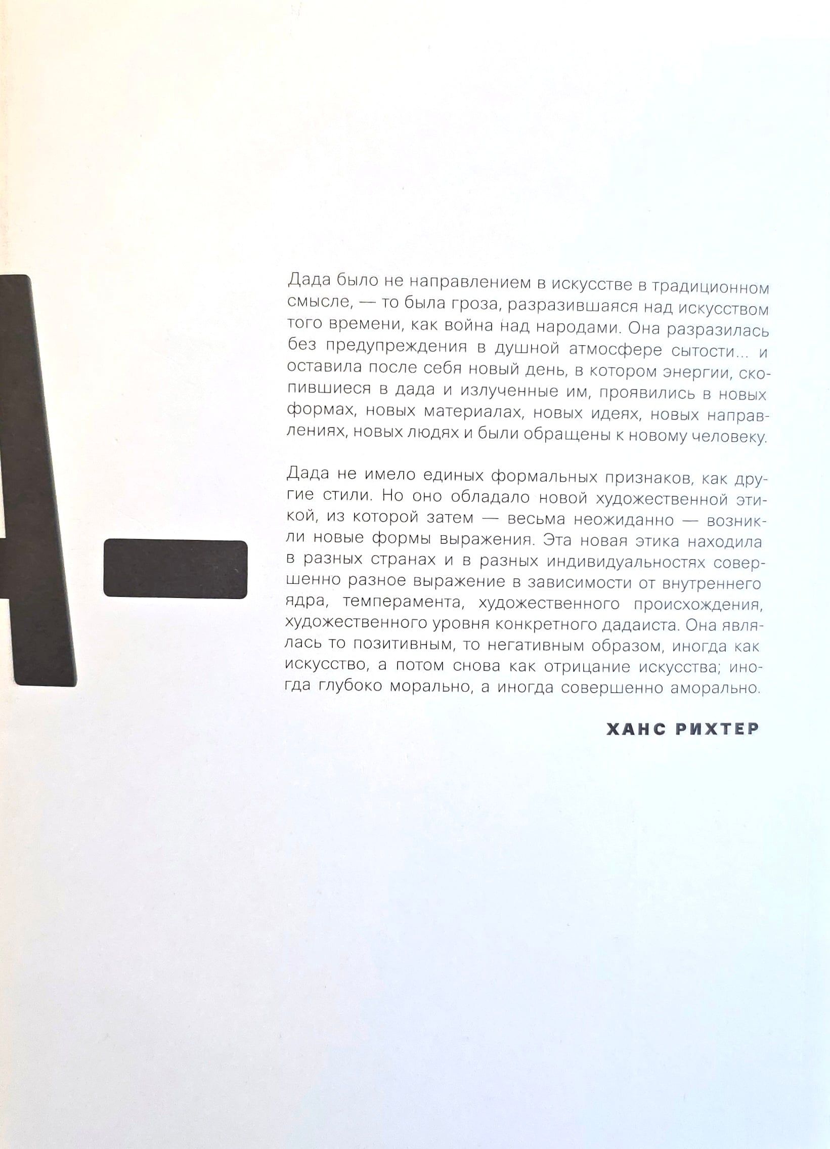 One of the main books on the history, theory and philosophy of Dadaism, written by a participant in the movement, German artist and film director Hans Richter (1888–1976). It tells in detail about the different versions of this anti-bourgeois and anarchic movement in art that appeared in the first quarter of the 20th century in Zurich, Barcelona, New York, Berlin, Cologne, Hanover and Paris. Extensive scholarly commentary, about 200 illustrations. Second edition with an expanded bibliography on Dadaism.