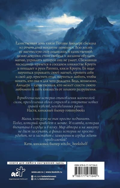 The only daughter of Prince Potava, Amidera ran away from her father's home on the eve of her engagement. All her life her magical powers have been suppressed, and her only goal has been freedom and the desire to curb the magic she does not know how to control. The escaped heiress hides in the neighboring principality of Crawgy and falls into the hands of Ragong, Prince of Crawgy. She must learn to control her magic, accept herself and her gift, forgive her father, and learn to love in order to realize who she is and what she was born to do. After all, Amidera may be the only one who can save her lover and the five principalities from total destruction.