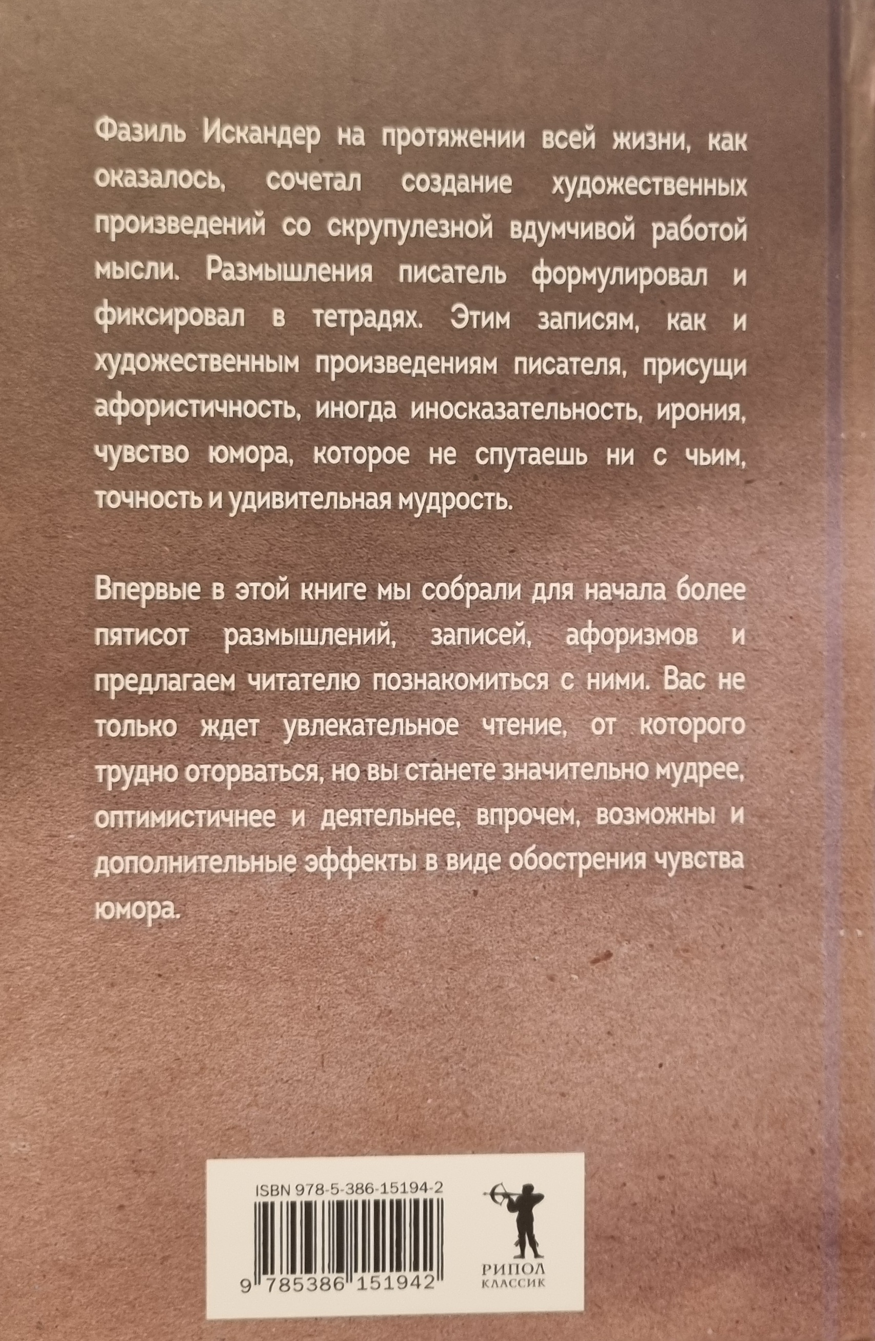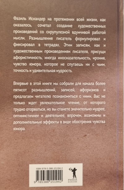 Fazil Iskander, as it turned out, combined the creation of artistic works with meticulous thoughtful work of thought throughout his life. The writer formulated and recorded his thoughts in notebooks. These notes, like the writer's artistic works, are characterized by aphorism, sometimes allegory, irony, precision and amazing wisdom.