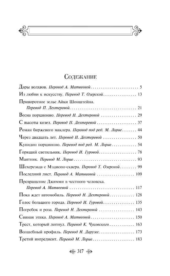 This collection includes stories with unexpected endings. Their heroes range from the "little people" of big New York to frivolous and cheerful artists and writers, from rough-and-tumble neighborhoods with their touchingly loyal girlfriends, to the inhabitants of the Wild West—cowboys, ranchers, and farmers. Their plots are always grippingly engaging, their endings swift and unexpected. They are all full of subtle humor, surprising comparisons, and unpredictable endings. The characters are noble and romantic, inventive and resourceful, optimistic and full of life, and they find a way out of any situation.