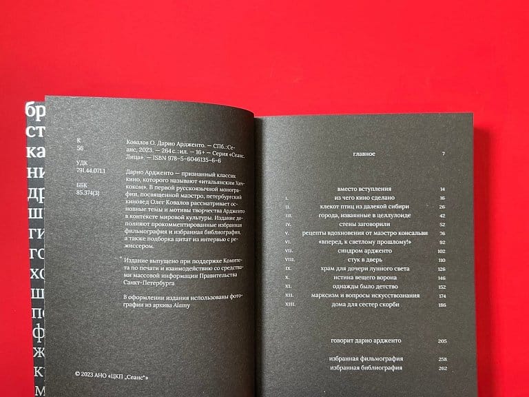 "We fall asleep hiding from the unsolvable problems of life. But then we wake up, because our dreams are much worse. They say it's the fantasy world that those who can't stand reality run to. But in the end, it is the real world that exists for those who do not have the courage to live in the realm of fantasy." Slavoj Žižek. The new installment of the series "Séance. Faces" is the first Russian-language monograph devoted to the work of the classic of European cinema Dario Argento. It was written by St. Petersburg film historian Oleg Kovalov. The author explores the key motifs of the director's work and describes bizarre reflections of world culture phenomena in the master's films. The publication is complemented by a selected filmography and bibliography, as well as a digest of interviews with the director.