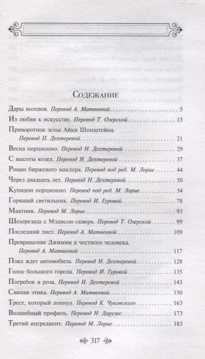 Bank clerk William Sidney Porter spent three years in prison for embezzlement of bank funds, where, inspired by the stories of his fellow inmates, he wrote his first short story under the pseudonym O'Henry, which soon brought him fame. Each short story by the incorrigible romantic and America's most brilliant storyteller is a brilliant and subtle humor, witty dialogue, unpredictable denouement and colorful characters. The diversity of the stories included in the collection shows the versatility of O'Henry's talent.