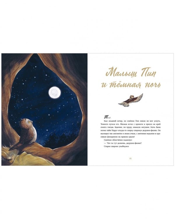 This book contains nine wonderful bedtime stories. You will find out what treasure the little bunny found on Christmas night, what the fox did in the school for chickens, who the kind puppy Poloshon helped, and take a flight with Grandpa Filin and little owl Pip. Give your little one a magical fairy tale and the kindest dreams!