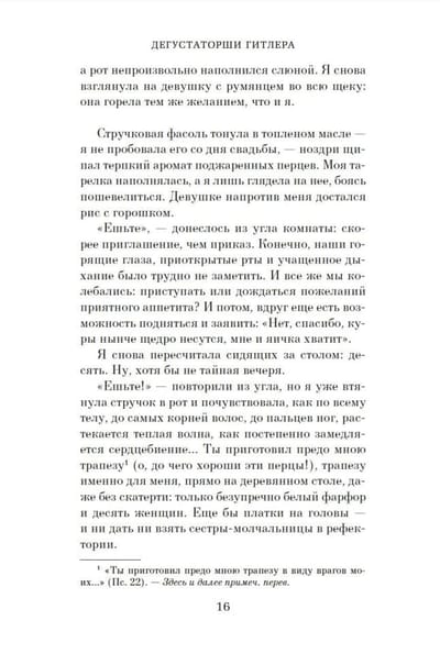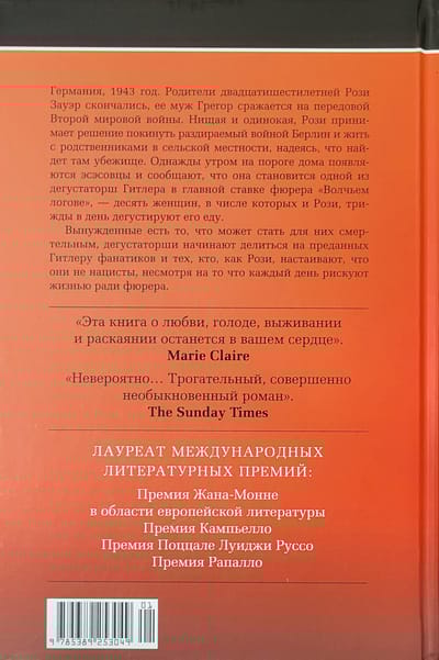 An international bestseller by Italian writer Rosella Postorino, winner of Italy's most prestigious literary awards: Stre ga, Campiello and Un autore l'Europa. The novel is based on a true story - an interview given in 2012 by 95-year-old Margot Wölk, the only survivor of the war out of fifteen girls who in Hitler's Wolfschanze ("Wolf's Lair") tasted food intended for the Fuhrer: he was pathologically afraid that he might be poisoned. For Berlin-born Rosa Sauer (under this name Margot Wölk is introduced in the novel), who found herself in East Prussia by chance, this service provided an opportunity to eat enough for the first time during the war, but the price of each meal could be death. Like Bernhard Schlink's The Reader, Hitler's Tasters is less about the horrors of war than about fear and choice. About whether one can stay above the fray while serving the embodiment of the world's evil. What can and what can not be done to keep the hope of future life, the return of her husband from the front...?