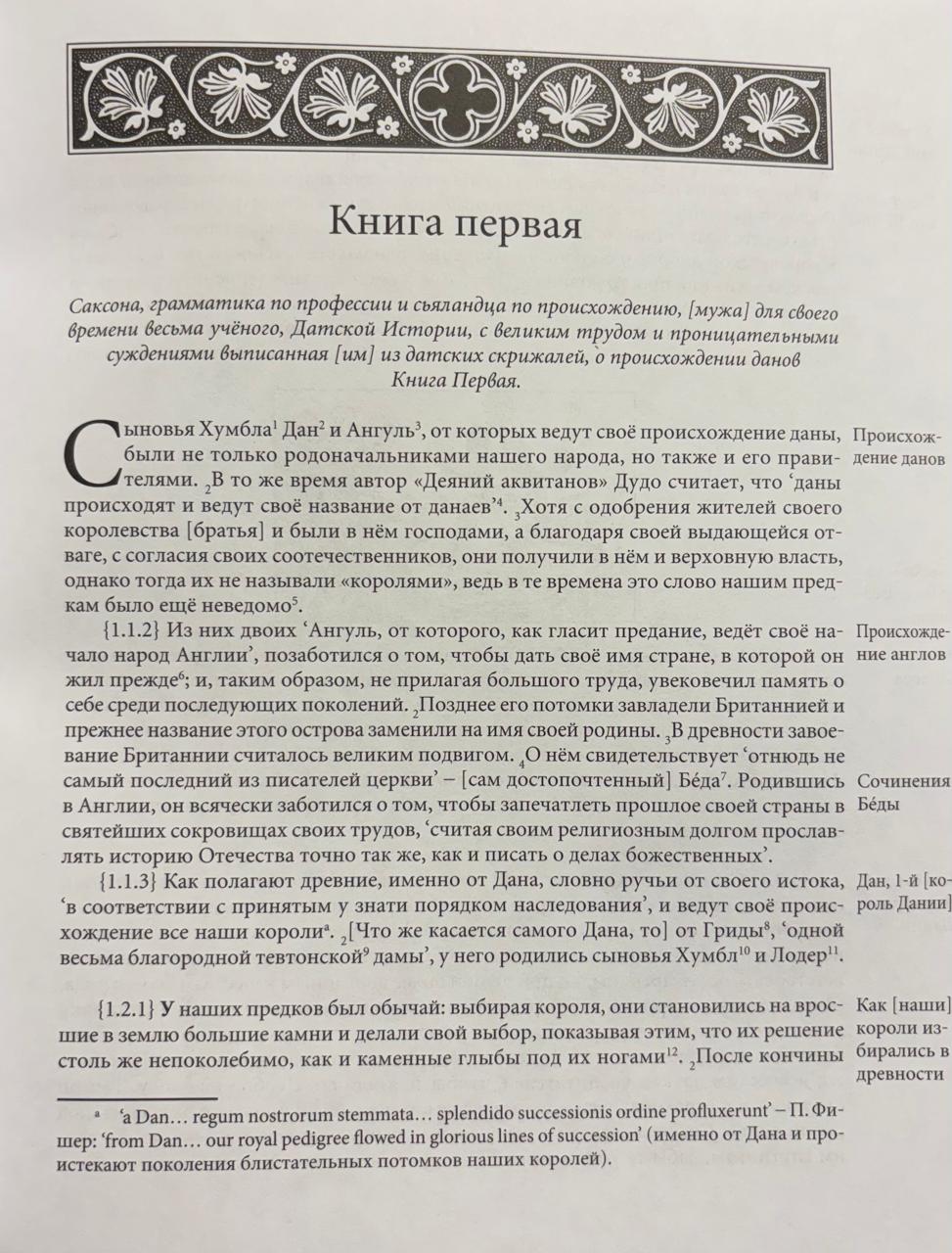 The Gesta Danorum (Gesta Danorum) by Saxo Grammaticus (c. 1140–1206/1220) is the primary source for the history of medieval Denmark and many other Scandinavian countries from ancient times to the end of the 12th century. Many historical stories and legends have survived to this day only in Saxo's retelling. The chronicle consists of 16 books written in Latin. The first books, included in Volume I (the mythological volume), present Scandinavian legends and tales. The Gesta Danorum was first published in Paris in 1514.