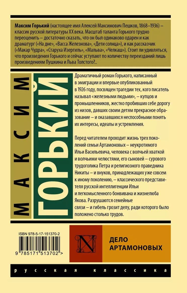 Gorky's dramatic novel, written in exile and first published in 1926, is devoted to the tragedy of those whom the writer called "iron men" - merchants and industrialists, who fought their way up from the bottom, who gave their children an excellent education - and found themselves unable to understand their interests, ideals and aspirations.