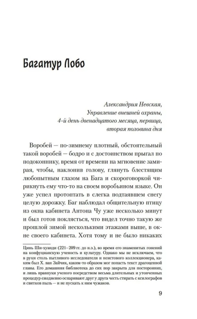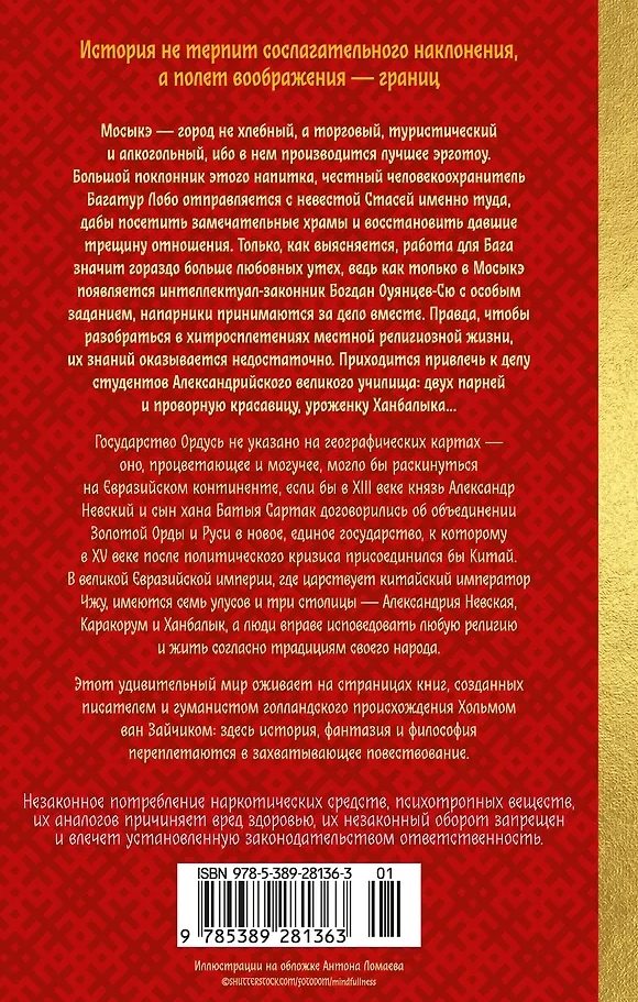 An alternative history. Present day. From the Baltic to the Yellow Sea stretches the magnificent Ordus, with three capitals: Khanbaliq in the east, Karakorum in the center, and Alexandria Nevskaya in the northwest. But Mosyke, known for its temples, bazaars, and ergotou production, is not a capital city, but rather a tourist destination. It is here that the renowned Lanzhong Bagatur Lobo decides to vacation with his fiancée Stasya, who is in a year of mourning, in order to rekindle the warmth of their relationship. However, fate does not allow them to rest—Minfa Bogdan Ouyantsev-Xu, returning from the Solovetsky Islands ("The Case of the Werefoxes"), also arrives in Mosyke with a mysterious mission. And the glorious human guardians must navigate the relationship between religious fanatics of two sects, enlisting the help of students from the law department of the Alexandria Great School, one of whom is a charming native of Khanbalik...