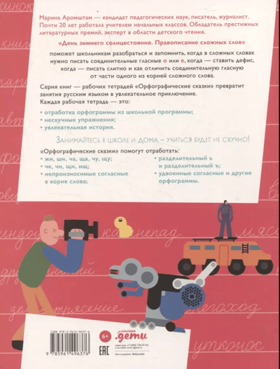Candidate of Pedagogical Sciences, writer and journalist Marina Aromshtam suggests practicing and remembering spelling rules with the help of a fascinating story - a real quest, during which the child will repeat the rules in a playful way so many times that he simply won't be able to help but remember them! For children from 10 years old.
