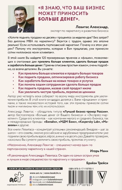 In this book you will find 120 proven techniques and "tricks" that will allow you to attract more clients, make more sales and earn more money in a matter of days. The techniques are described in simple language, in great detail, with all the details. You will learn: