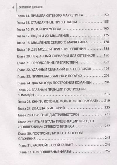 Network marketing is a special kind of business that does not require large monetary investments, and profits can be made in the shortest possible time. For 15 years Saidmurod Davlatov has managed to teach the principles of working in this field to thousands of people. Most of them have achieved impressive results - became managers in MLM-companies. In his book, Saidmurod reveals all the subtleties of network marketing and helps beginners avoid pitfalls at the start.
