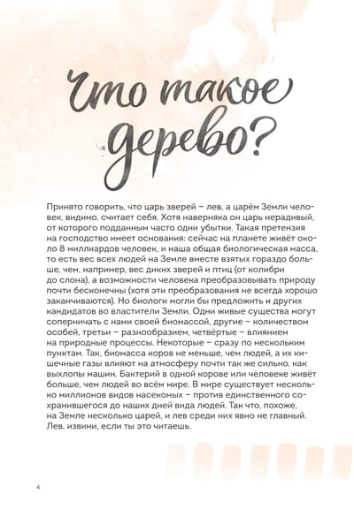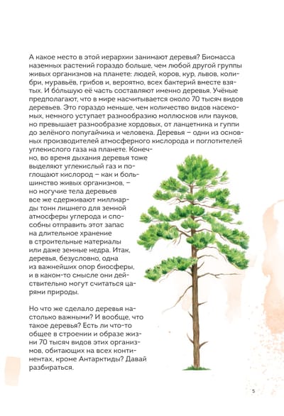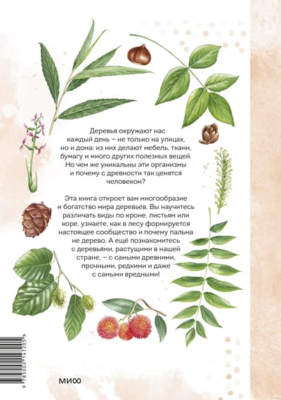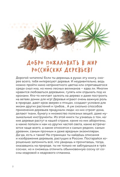 In this beautiful book you will find more than 45 species of Russian trees - including the most ancient, durable, rare and even the most harmful! You will learn what distinguishes trees from other plants, learn to identify species by their crown, leaves or bark, understand how the forest ecosystem is structured and how people interact with trees from ancient times to the present day. The practical section will tell you about crafts associated with trees - birch bark weaving, carving and wood burning.