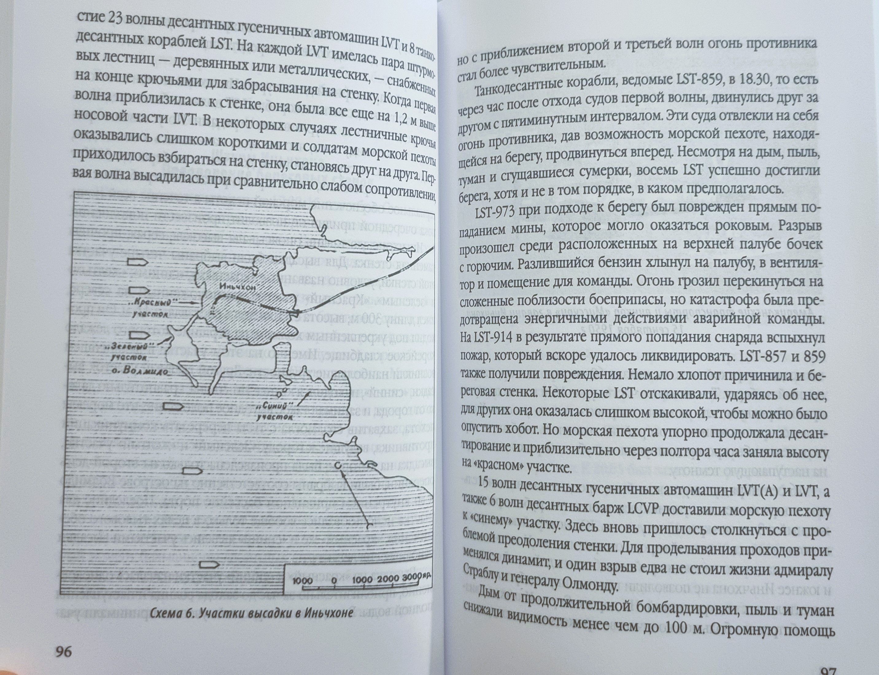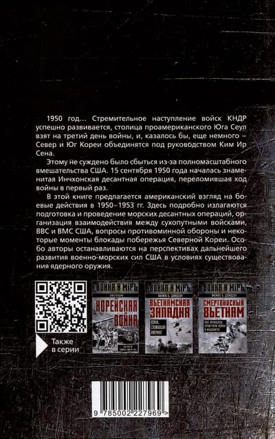 1950… The rapid advance of the DPRK troops is developing successfully, the capital of the pro-American South, Seoul, is captured on the third day of the war and, it would seem, a little more – the North and South of Korea will unite under the leadership of Kim Il Sung. This was not destined to happen due to the full-scale intervention of the USA. On September 15, 1950, the famous Incheon landing operation began, turning the tide of the war for the first time. This book offers an American view of the military actions in 1950-1953. It describes in detail the preparation and conduct of marine landing operations, the organization of interaction between the ground forces, the Air Force and the Navy of the USA, issues of mine defense and some aspects of the blockade of the coast of North Korea. The authors especially dwell on the prospects for the further development of the US Navy in the conditions of the existence of nuclear weapons.