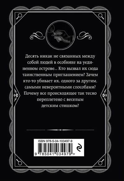 Ten unrelated people in a mansion on a secluded island... Who summoned them here with a mysterious invitation? Why is someone killing them, one by one, in the most unbelievable ways? Why is everything that happens so closely intertwined with a funny nursery rhyme?