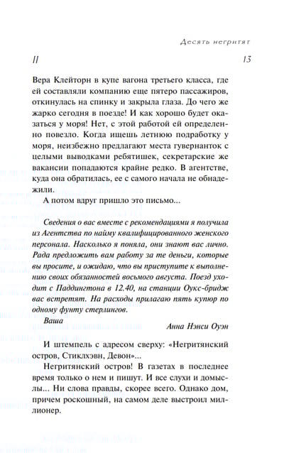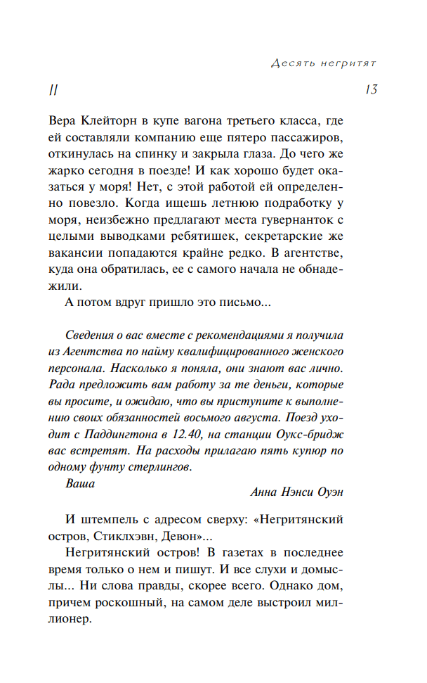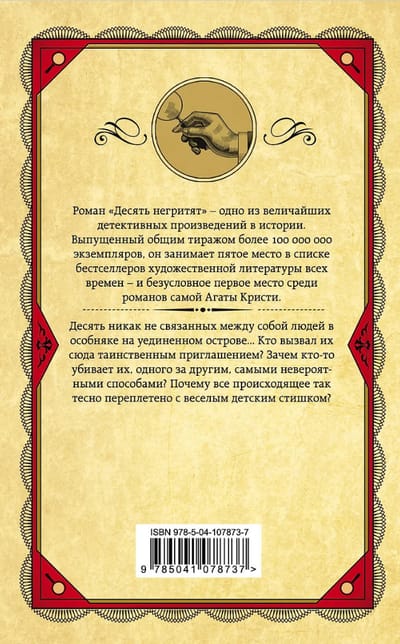 The novel Ten Negroes is one of the greatest detective works in history. With more than 100,000,000 copies in print, it ranks fifth on the best-selling fiction list of all time - and certainly first among Agatha Christie's own novels.