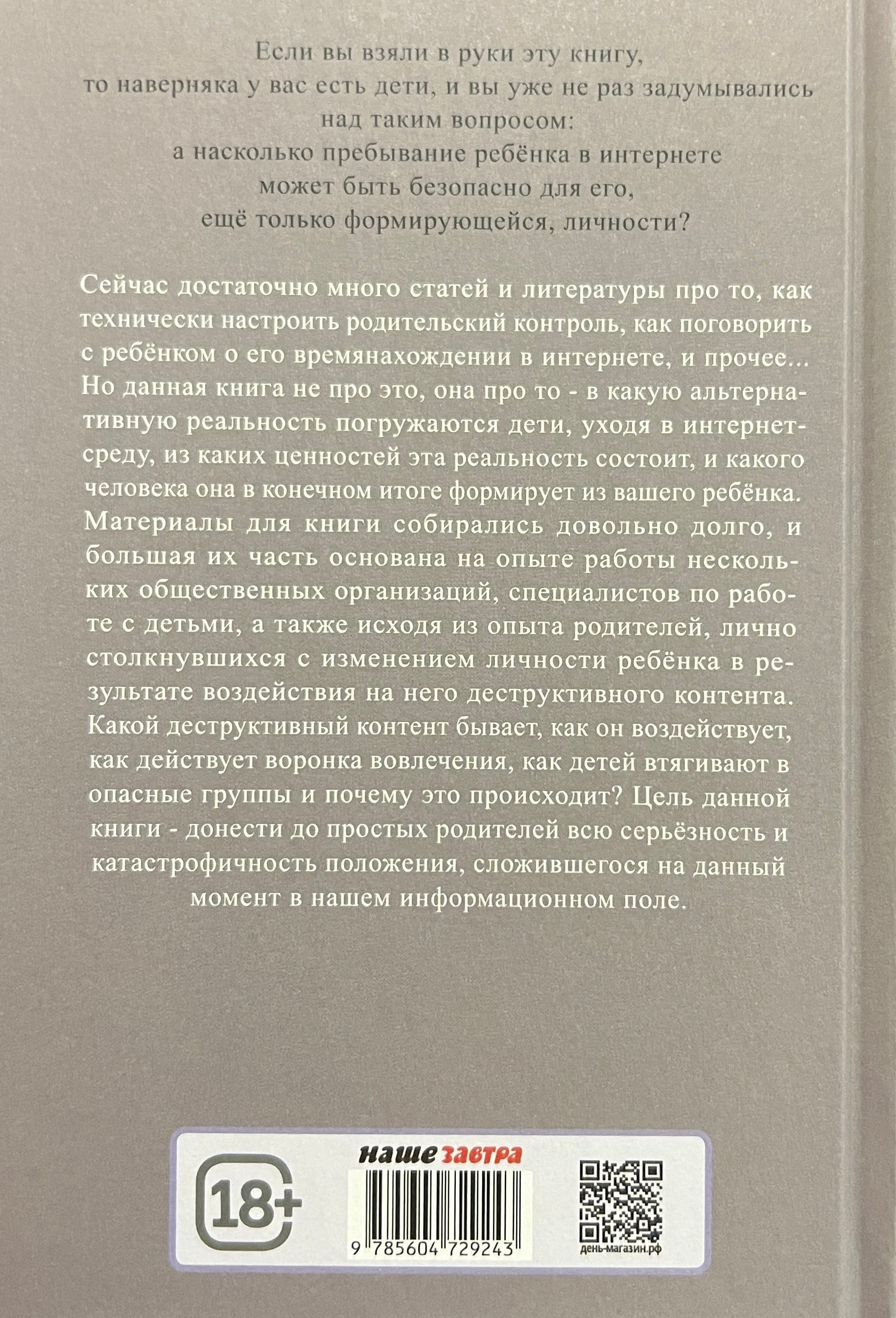 What kind of destructive content is there, how does it affect, how does the funnel of involvement work, how are children drawn into dangerous groups and why does this happen? The purpose of this book is to convey to ordinary parents the seriousness and catastrophic nature of the situation that has currently developed in our information field.