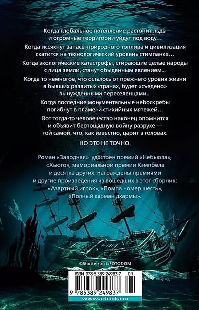 When global warming melts the ice and vast areas go under water... When natural fuel reserves run out and civilization slips to the technological level of steampunk... When environmental disasters that wipe entire nations off the face of the earth become commonplace... When what little remains of the formerly developed countries' standard of living is "eaten" by displaced people... When what little is left of the former standard of living in formerly developed countries will be "eaten up" by displaced people.... When the last monumental skyscrapers will perish in the flames of spontaneous rebellions... That is when humanity will finally come to its senses and declare a merciless war on devastation - the same devastation that is known to reign in the head. But this is not certain. The novel "Clockwork" was awarded the "Nebula", "Hugo", memorial award Campbell and a dozen others. Other works in this collection have also been awarded prizes: "The Gambler", "Pomp Number Six", "A Pocketful of Dharma".