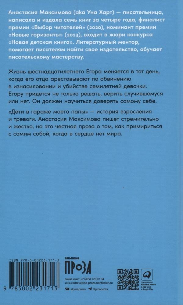"The Kids in My Dad's Garage" is a story of growing up and anxiety. Anastasia Maximova writes impetuously and harshly, but this is honest prose about how to reconcile with yourself when there is no peace in your heart.