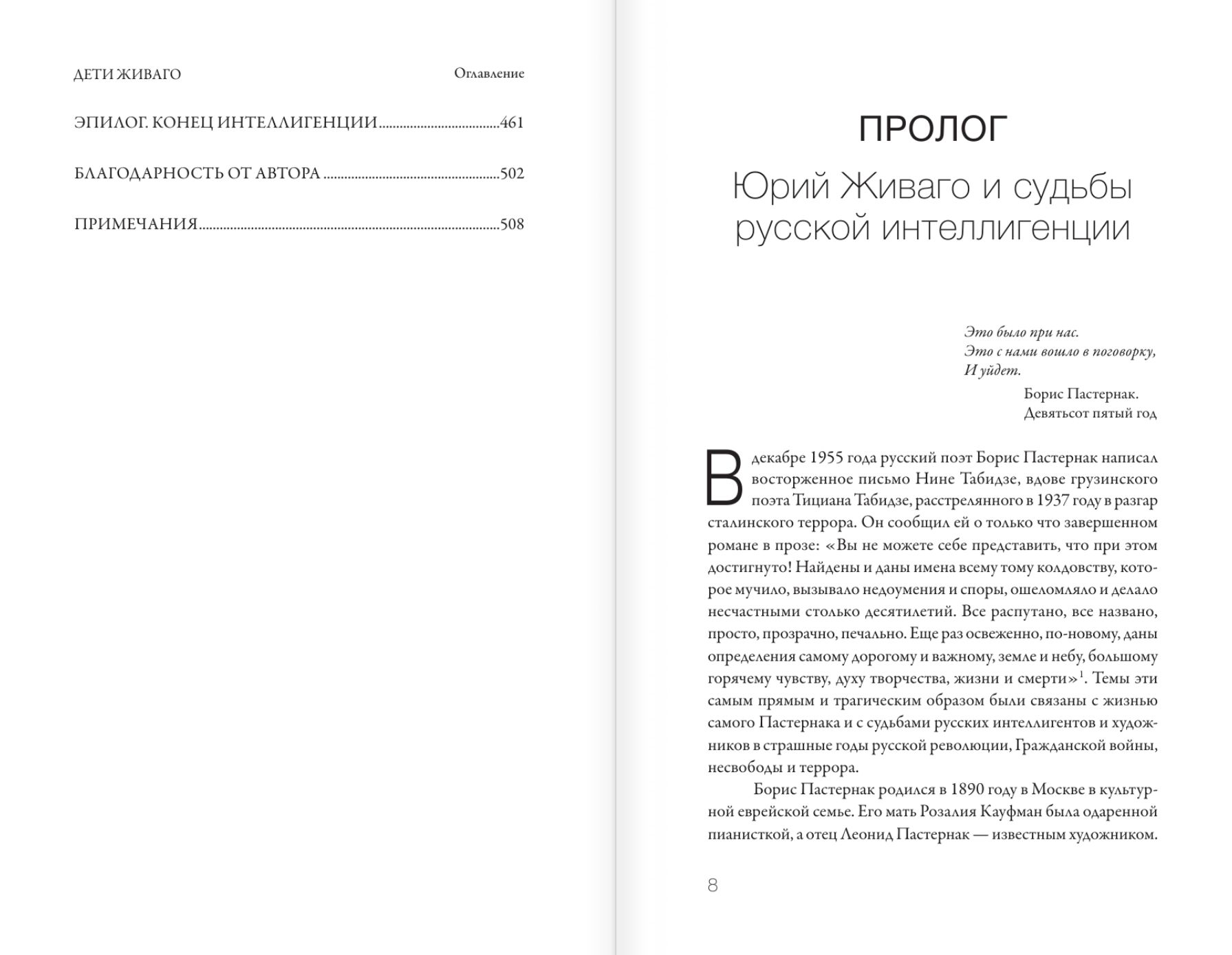 "Children of Zhivago" is a collective history of the people who shaped the culture, worldview, and public opinion in Russia after Stalin's death. These include not only the famous "Sixties" generation, such as Alexander Tvardovsky, Yevgeny Yevtushenko, and Vladimir Vysotsky, but also their elder mentors—from Ilya Ehrenburg to Dmitry Likhachev; dissidents Andrei Sakharov and Alexander Solzhenitsyn; physicists and sociologists; journalists and filmmakers; theater directors and actors; government and party officials—all who saw themselves as the heirs of the Russian intelligentsia.