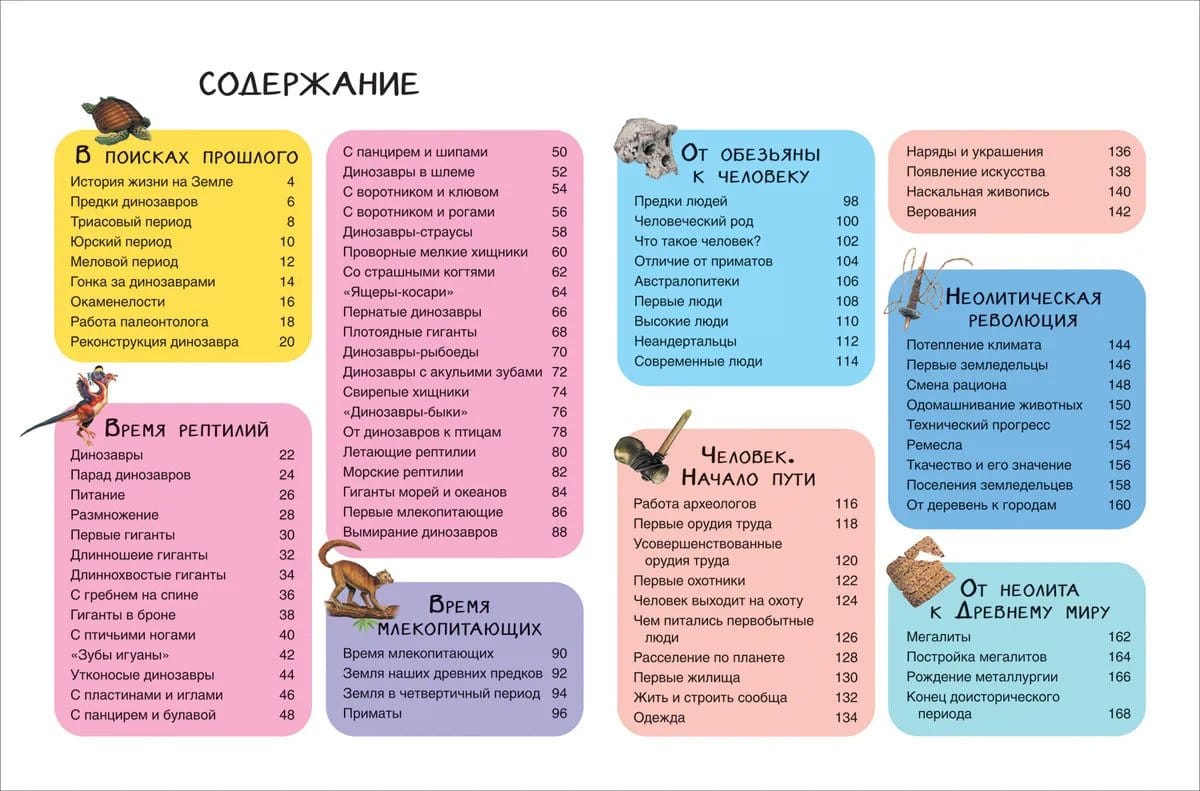 This book will awaken children's interest in dinosaurs. They will be very surprised to learn that many millions of years ago our planet was inhabited by herbivorous giants and ferocious predators that hatched from eggs like modern birds. After the dinosaurs disappeared, man became the master of the Earth. The book tells about the origin of humans and how they conquered nature step by step.