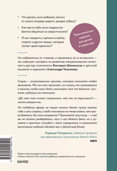 What to do if a child is frozen with terror after seeing a dog? How to behave if a teenager is afraid to socialize with peers? And how to talk to children about death and other things that scare even adults? This book is a helper for parents and caregivers, grandparents, sisters and brothers. With examples, exercises, tips. You will understand how the mechanism of fear works, how to ecologically calm a frightened child and how to teach him to benefit from this ancient and natural emotion.