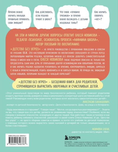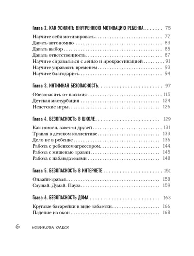 The book pays special attention to modern challenges - home protection, safety on the Internet, on the street and at school. Each situation is considered from a practical point of view, so that parents can easily apply the advice in everyday life. Olesya also touches on the topic of sex education and the importance of frank conversations with sons and daughters.