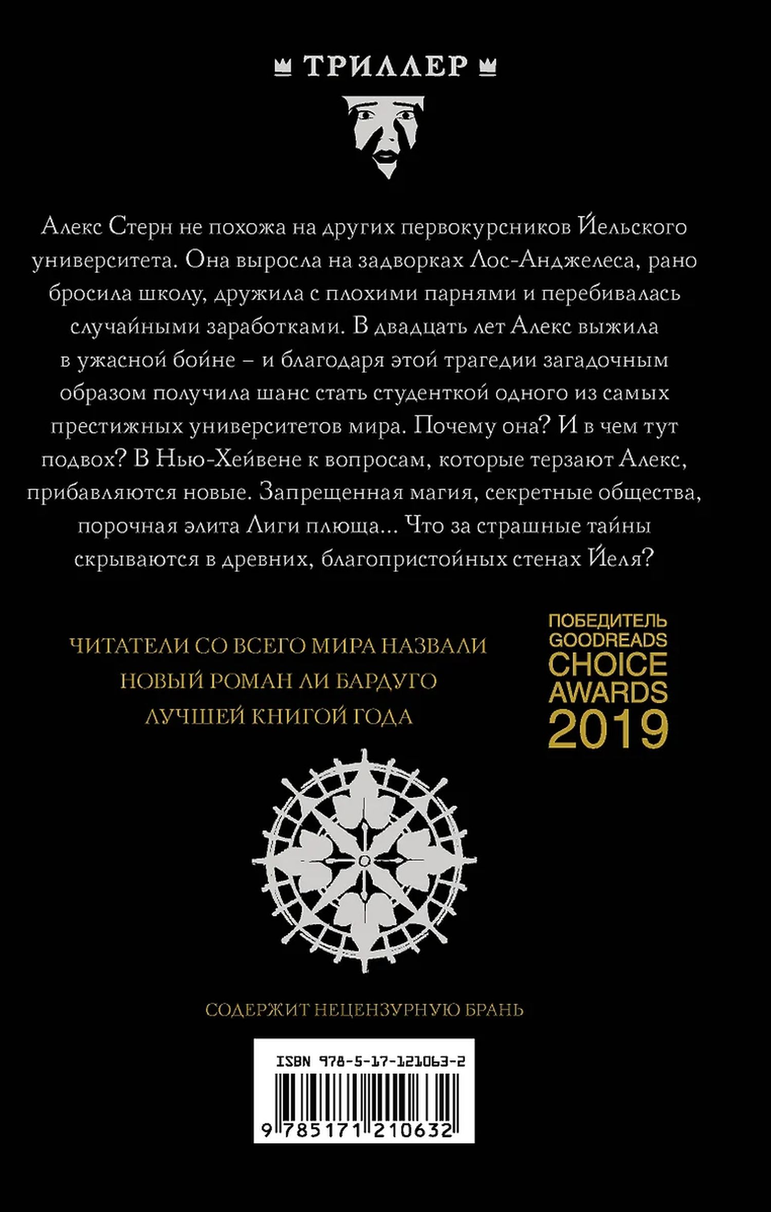 Alex Stern is not like other freshmen at Yale. She grew up on the outskirts of Los Angeles, dropped out of school early, hung out with bad boys, and worked odd jobs. At twenty, Alex survived a horrific massacre—and thanks to that tragedy, she mysteriously got a chance to attend one of the most prestigious universities in the world. Why her? And what's the catch? In New Haven, Alex's questions are joined by new ones. Forbidden magic, secret societies, the vicious elite of the Ivy League... What dark secrets lurk within the ancient, decorous walls of Yale?