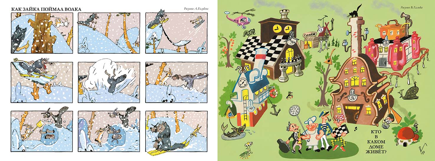 The Girl Masha, the Doll Natasha and Everything-Everything-Everything is a collection of humorous drawings and poems for children from archival issues of the magazine "Veselye Kartinki". The name of the magazine speaks for itself - small children always like funny and cheerful pictures accompanied by short witty captions. Kanevsky, Vasnetsov, Rotov, Konashevich, Laptev, Suteev, Chizhikov, Eliseev, Bitny - this is by no means an exhaustive list of the maestros of fine arts who collaborated with the editorial staff. Here is how one of the authors Leonid Sergeyev described the atmosphere that prevailed in "Merry Pictures": "A terrific world of artists-humorists, a clan of inexhaustible inventors and caustic mockers. This clan can be imagined as a cloud with an electric field of humor, getting into which involuntarily shakes with laughter."