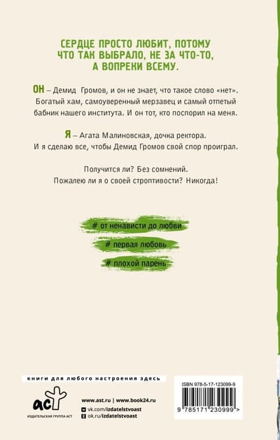He's Demid Gromov, and he doesn't know what the word "no" means. He's a rich boor, a self-righteous bastard, and the biggest womanizer in the institute. And he's the one who bet on me. I'm Agatha Malinowski, the chancellor's daughter. And I will do everything I can to make sure that Demid Gromov loses his bet. Will he? Without a doubt. Will I regret my stubbornness? Never!