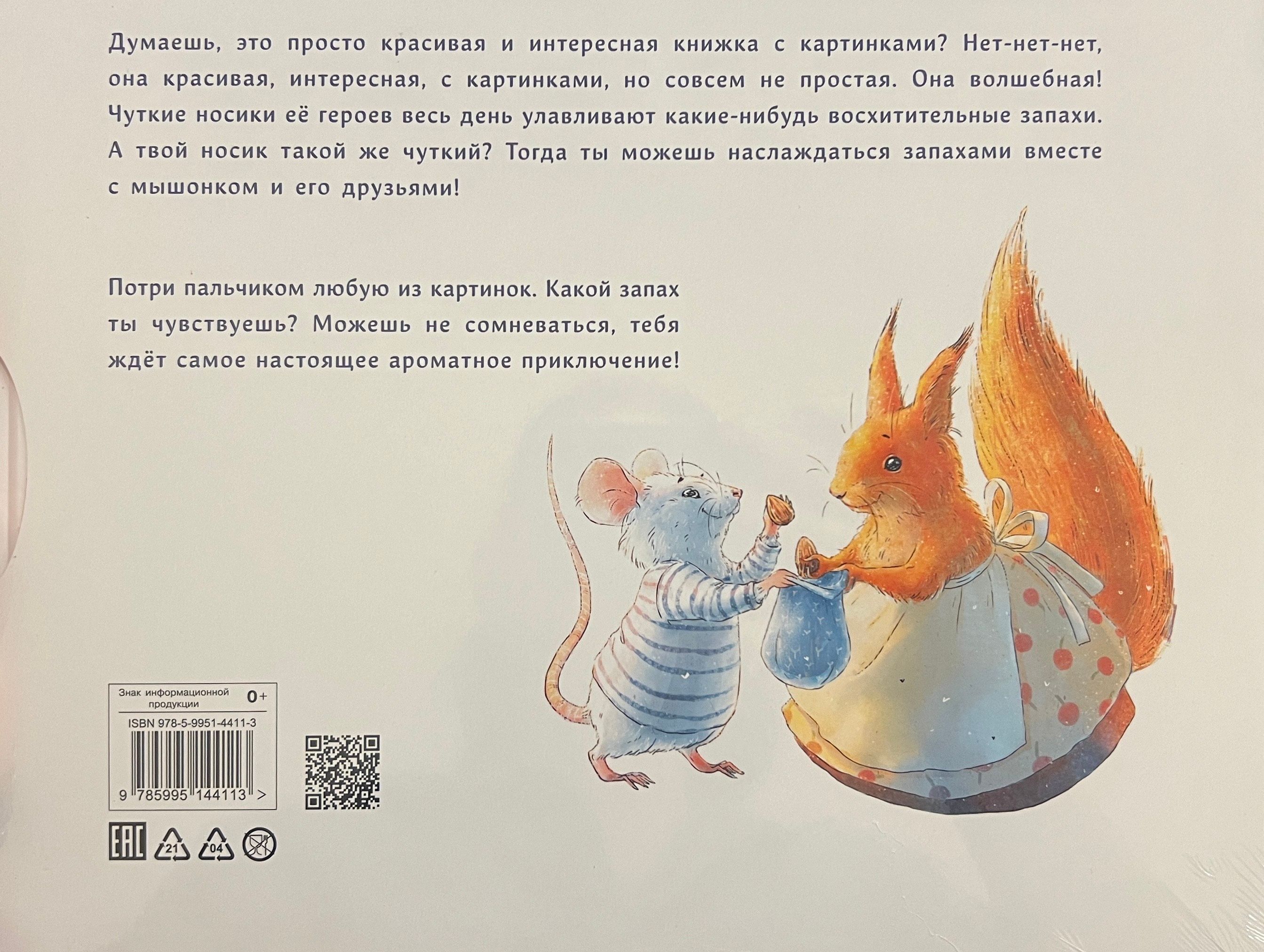 You think it's just an interesting picture book? No, no, no! It's a really interesting picture book, but it's not simple at all. It's magical! Its characters' sensitive noses pick up delightful smells all day long. Is your nose as sensitive as hers? Then you can enjoy the smells together with the mouse and his friends! Rub your finger on any of the pictures. What odor do you smell? You can rest assured that you are in for a real scent adventure! This is a scent book for preschool age children. Delight yourself and your child with a scent book.