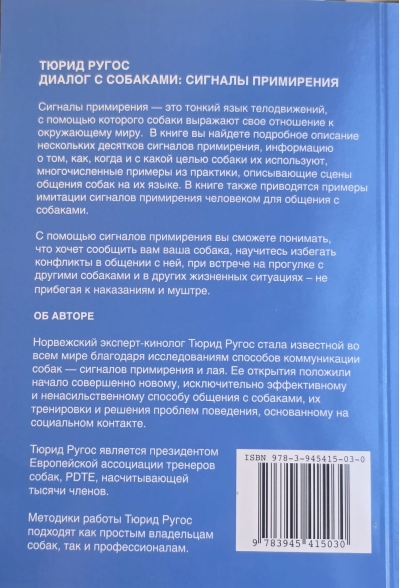 Calming signals are a subtle body language that dogs use to express their feelings about the world around them. This book provides a detailed description of several dozen calming signals, information on how, when, and for what purpose dogs use them, and numerous practical examples describing scenes of dog communication in their own language. The book also provides examples of how humans can imitate calming signals to communicate with dogs.