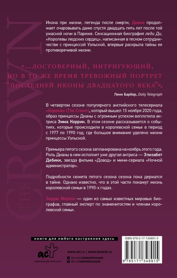 An icon in life, a legend in death, Diana continues to fascinate even twenty-five years after that terrible night in Paris. This sensational biography of Lady Di, "the queen of people's hearts," written in close collaboration with the Princess of Wales, reveals for the first time the secrets of her controversial life. Author Andrew Morton is one of the world's most renowned biographers, the world's foremost expert on celebrities and members of the royal family.