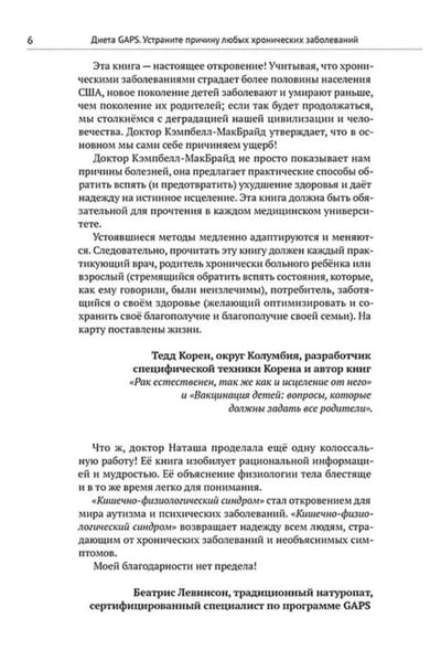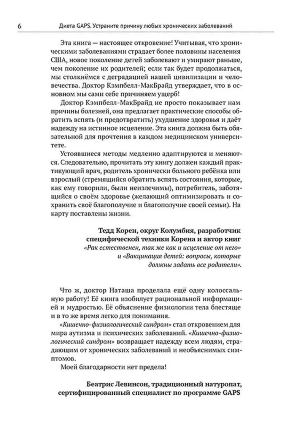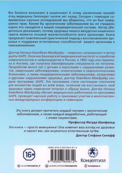 All diseases originate in the gut! This is the conclusion reached by the father of medicine, Hippocrates, thousands of years ago. Today, with the help of modern scientific research, we are convinced that he was absolutely right. Whatever chronic disease you suffer from, its roots are in your digestive system. In this book, the author convincingly proves why the health of our digestive system is the basis for the viability of the entire body. Through extensive research and clinical experience, Natalia Campbell-McBride demonstrates how a damaged microbiome causes diseases - from allergies and autoimmune disorders to neurological and hormonal imbalances. The book offers a comprehensive, practical approach to restoring health and supporting your body's natural ability to heal itself. The publication will be useful for practicing doctors and people with chronic diseases, as well as anyone who is worried about their health.