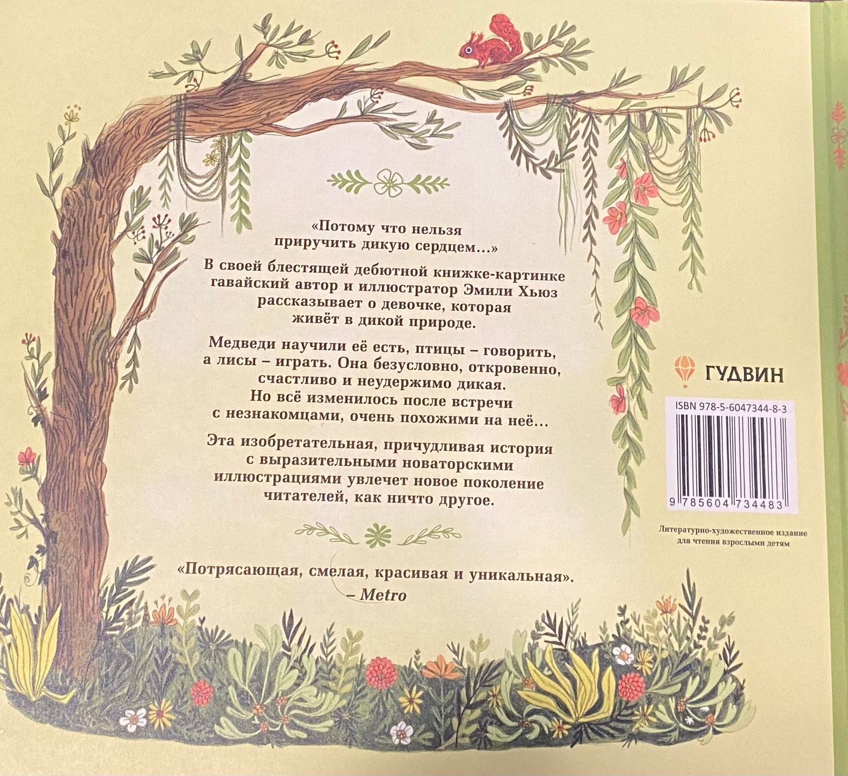 In her brilliant debut picture book, Hawaiian author and illustrator Emily Hughes tells the story of a girl who lives in the wild. Bears have taught her to eat, crows have taught her to talk, and foxes have taught her to play. She is undeniably, frankly, happily, and irresistibly wild. But everything changes when she meets strangers who are just like her...