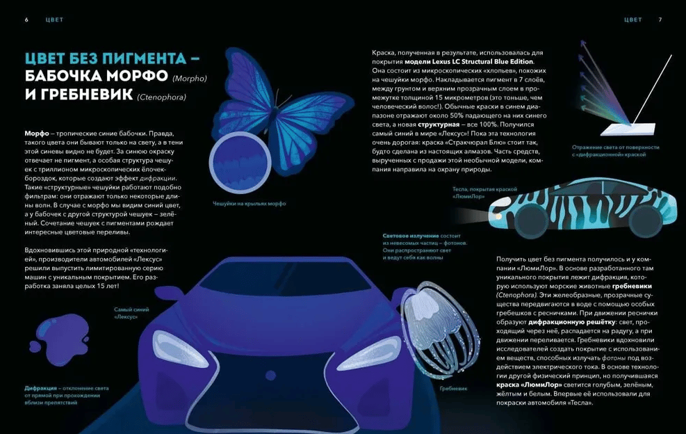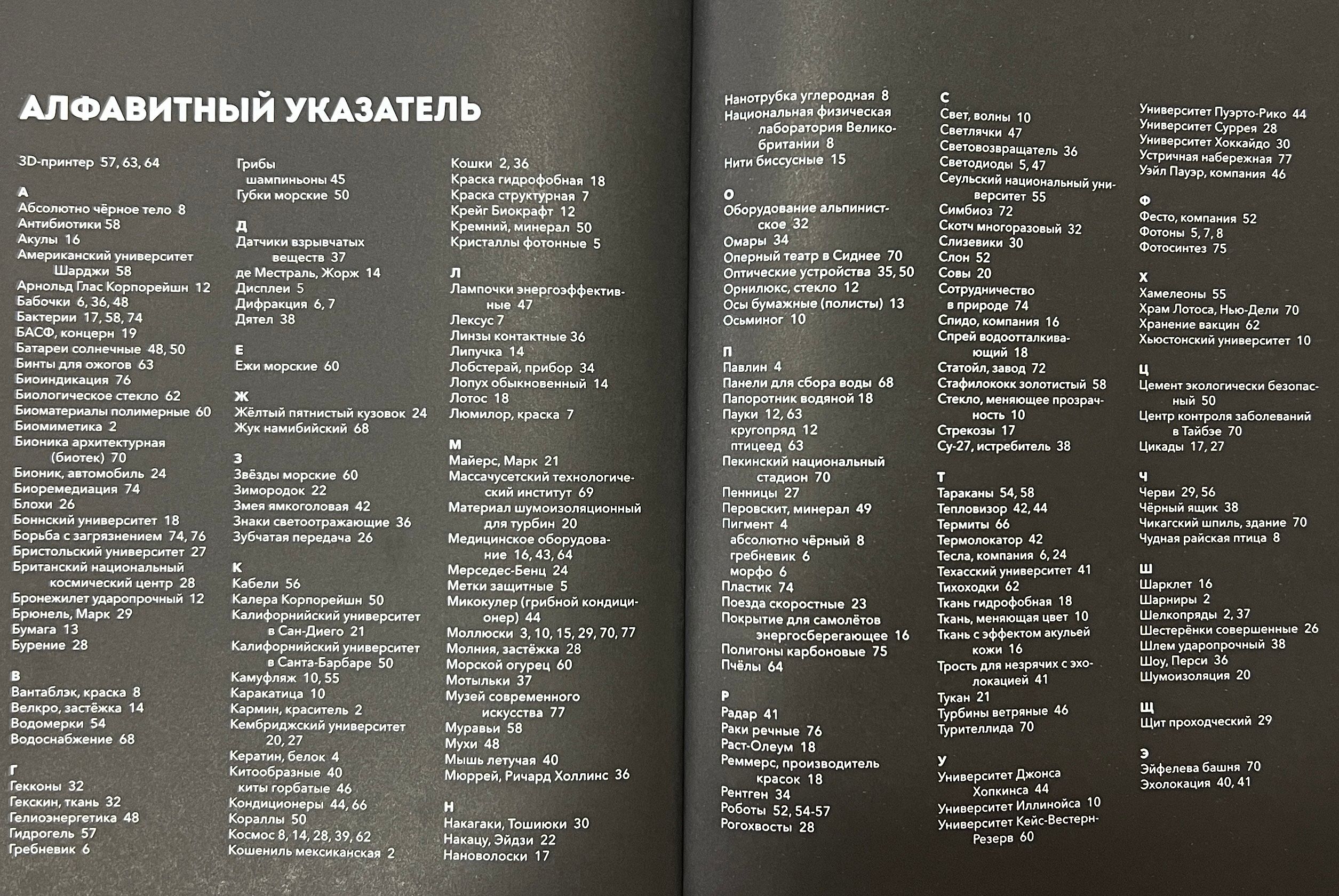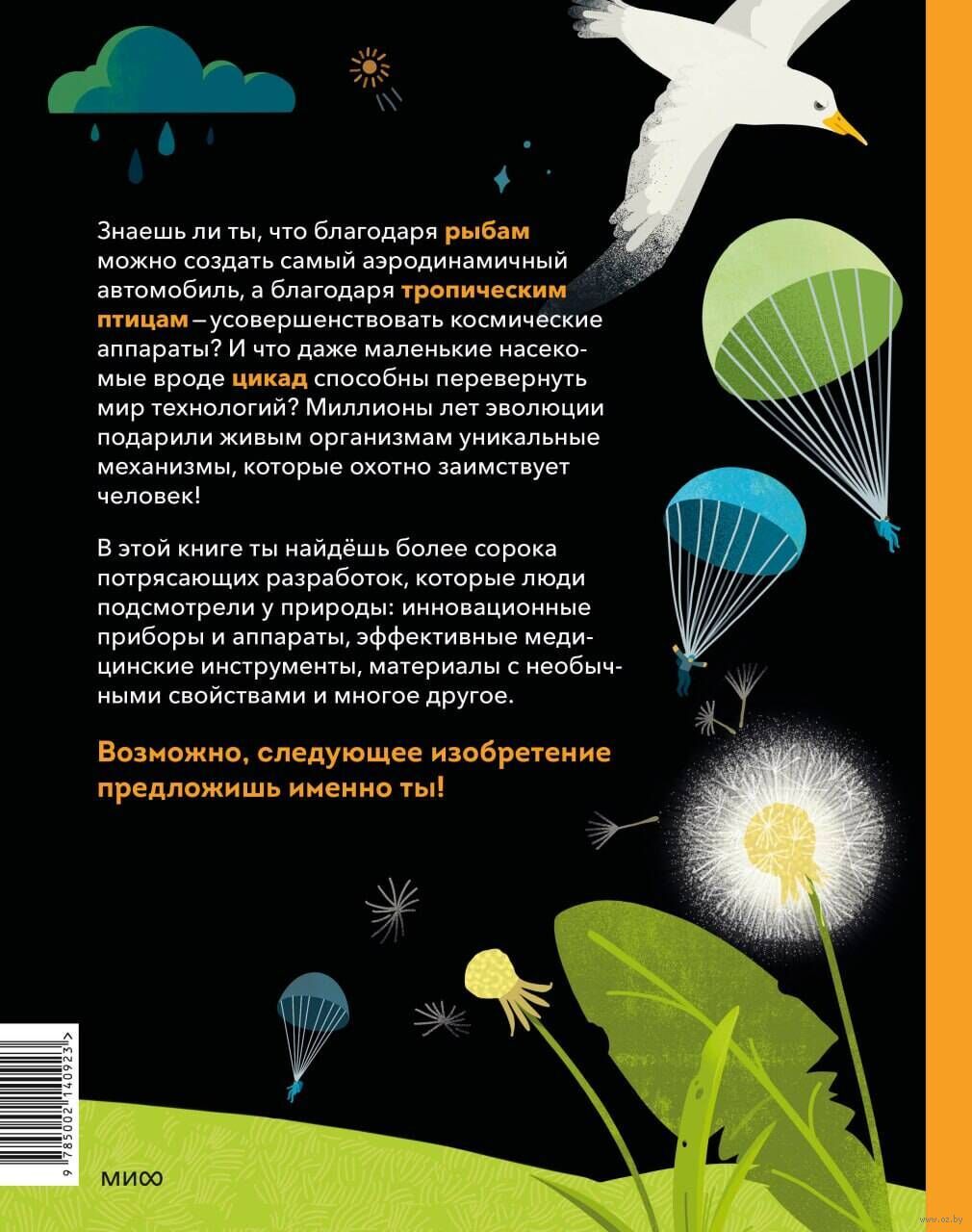 A beautifully illustrated book about the inventions that nature - plants, birds, insects and even mollusks - has suggested to man. Man has always interacted with nature, and for good reason: not only can it be a source of resources and materials, but it can also provide very useful ideas. This book is dedicated to these ideas: it contains more than 40 of the most interesting technologies, inventions and solutions that humans have borrowed from living organisms - and which make our lives more convenient and better. You'll learn how observing the behavior of lobsters, the hopping of cicadas, and the shape of a kingfisher's head have helped people create modern machines and technologies, effective medical instruments, materials with unusual properties, and much more. There are examples to suit every taste - from impact-resistant helmets and mountaineering equipment to ultra-blue Lexus and high-speed trains. Explore nature - perhaps it will inspire you to experiment too. For ages 8 and up.