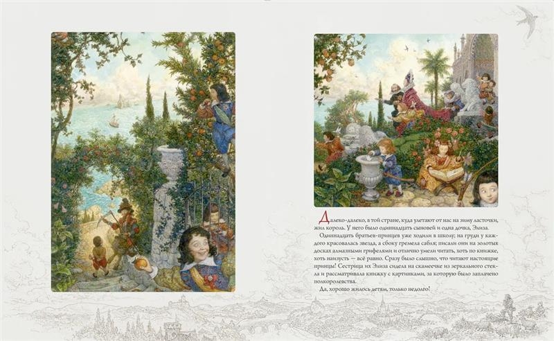 Princess Eliza and her eleven brothers grow up in a happy family. But everything changes when a witch stepmother appears in their house. She turns the princes into swans, and kicks little Eliza out of the palace...The fairy tale "Wild Swans" is a story about love, loyalty and salvation. The protagonist confronts the evil will and the trials that fell to her lot. But, as it should be in magical fairy tales, everything will end with her deliverance from evil spells and her wedding to a beautiful king. The illustrations for this edition of one of Hans Christian Andersen's most poignant fairy tales were drawn by the famous St. Petersburg artist Anton Lomaev.